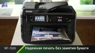 Модель среднего уровня, которая может оказаться незаменимым офисным помощником, чему способствует высокая скорость работы, функция двусторонней печати и встроенный факс с памятью на целых 550 страниц. Epson WorkForce WF-7620DTWF может работать не только с листами в формате А4, но и с А3. Максимальная скорость цветной печати составляет 20 стр/мин, а ресурс картриджа — 380 стр, при этом в основе устройства находиться классическая струйная технология.
