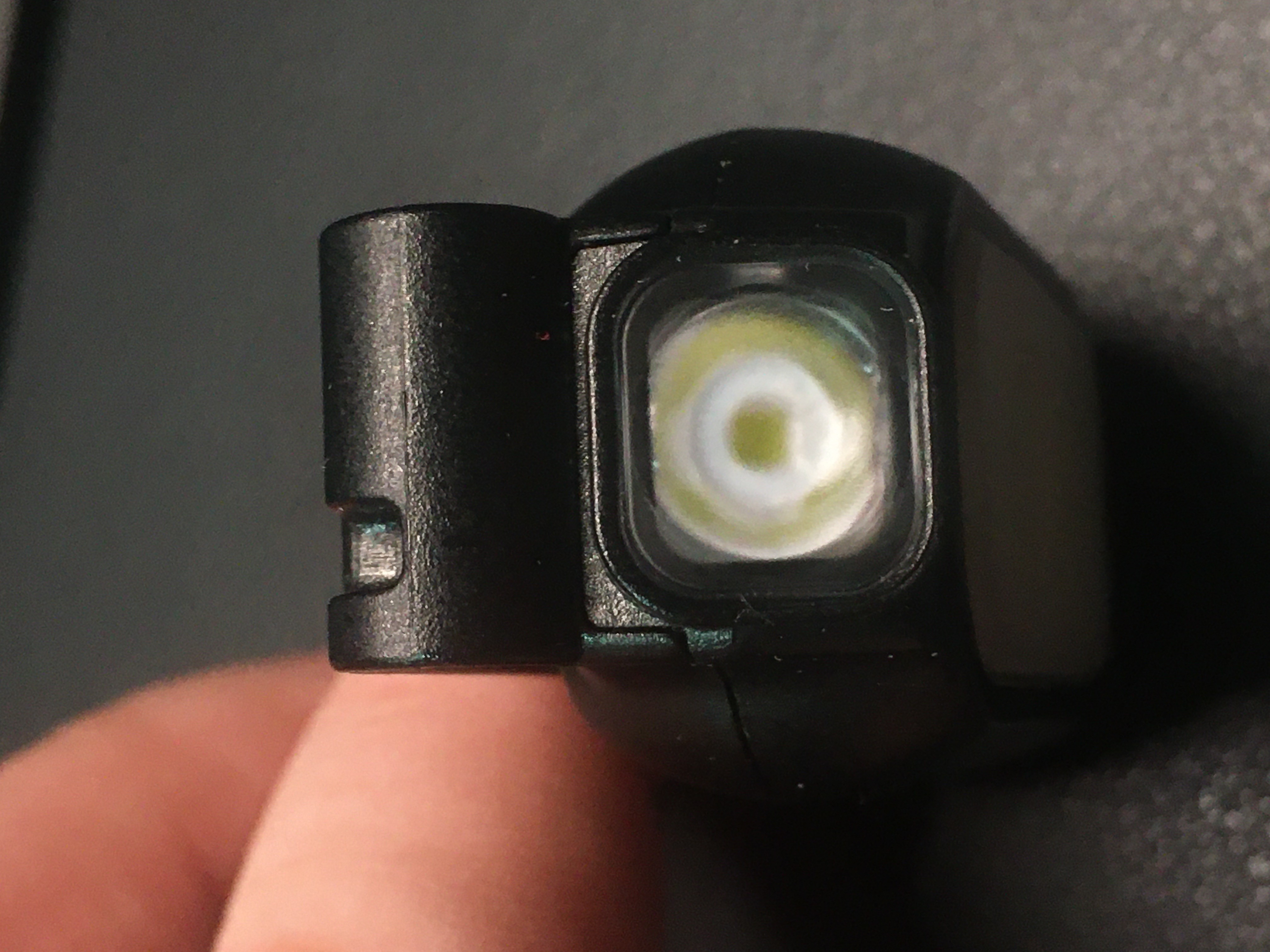 Что касается основных обязанностей, модель обладает максимальной яркостью в 150 люменов и светит на расстояние до 40 метров. На выбор есть три режима яркости (минимальный, средний и максимальный), а также красный и синий свет, которые в основном используются для предупредительных сигналов. При этом для управления предусмотрена только одна кнопка, которая меняет режимы в зависимости от длительности нажатия. Питается фонарик от встроенного аккумулятора емкостью 275 мАч и заряжается с помощью USB-кабеля. На полное восстановление энергии требуется 1.5 часа. Кабель для зарядки включен в комплект поставки.