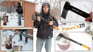 Рекомендую для аккуратных пользователей, кто не рубит ручкой, и располагает финансами, чтобы жаба не задушила. Заточка сходится в ноль по всей плоскости металлической гладкойповерхности, поэтому топор практически никогда не клинит в полене. Было очень необычно что лезвие само выталкивается из не расколотого чурбака. Рубит легко, лезвие заточено очень хорошо, почти до бритвы, сталь хромистая, думаю ломкая, по гвоздям и камням попадать не рекомендуется, возможен скол. Сучки конечно не так просто разрубить, но тоже реально, пробовал на дубе если без [censored] колется на ура, топор кажется легким, но с той заточкой и металлом, думаю вес подобран хорошо. Цена пользуюсь Fiskars X25 менее месяца |