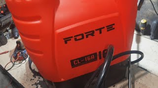 Конечно, материал корпуса слабый.Самая тонкая форсунка распыляет на 2м .Штанга дрянь, как не затягивал, а удары давления выбивают звено в каком-то месте и течёт .Купил телескопическую штангу из стеклопластика.Ремни закрепил пласмассой из пистолета. Насос и аккумулятор -это чудо. Сдабый пластик, плохая штанга, плохое крепление ремней. |
