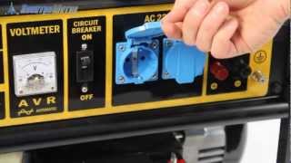 Вращающий момент бензинового агрегата Forte FG 6500EA производит до 5.5 кВт мощности. Ее распределение на питающие устройства реализовано через две розетки: на 16 А и на 32 А. Для стабилизации выходного напряжения в модели используется синхронный альтернатор. Значение вырабатываемого вольтажа показывается стрелочным вольтметром на панели управления генератора.