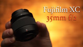 Бюджетный фикс-объектив для использования совместно с беззеркальными камерами Fuji начального и среднего звена. Оптическую формулу модель подсмотрела у объектива Fuji XF 35mm f/2.0 R WR. Ключевые отличия от него — вдвое дешевле ценник, полностью пластиковый корпус (в т.ч. байонетное крепление), отсутствие кольца диафрагмирования и влагозащиты. В целом оптическая схема Fuji XC 35mm F2.0 состоит из 9 элементов в 6 группах с двумя асферическими линзами.