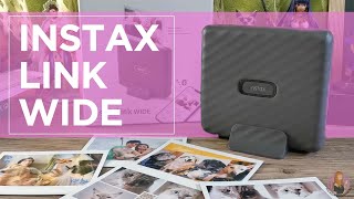 Фирменное приложение Instax Link WIDE (доступное для iOS и Android) предоставляет широкие возможности для редактирования фото непосредственно перед распечаткой, в том числе предоставляет большое количество заготовленных шаблонов, позволяет добавлять надписи, стикеры, эмодзи, создавать коллажи и пр. Максимальное разрешение печати составляет 800x1260 dpi, скорость — до 12 с на страницу. При этом производителем предусмотрены два различных режима печати — «instax-Natural» (стандартное качество) и «instax-Rich» (с более насыщенными цветами). Модель работает от встроенного аккумулятора, емкости которого достаточно для создания приблизительно 100 отпечатков. Время полной зарядки — от 80 до 120 минут.