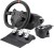 Руль GamePro RW070PM оснащен силовой обратной связью и 15 кнопками, включая четырехпозиционный D-pad. Заслуживает внимания и мультиплатформенная совместимость: помимо ПК на Windows, заявлена поддержка Xbox и PlayStation 4. Крепление к столу реализовано двойным способом — зажимами и присосками, что повышает устойчивость конструкции при активном вращении. Корпус пластиковый, общий вес комплекта составляет около 8,5 кг. Питание осуществляется от сети, а на корпусе имеется выход на наушники — мелочь, но удобная для ночных заездов, когда шуметь нежелательно.