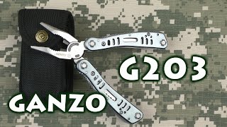 Прорези в рукоятках дополнительно облегчают мультитул Ganzo G203 и придают ему динамичный полуспортивный внешний вид. Благодаря демократичной стоимости, позиционируется как продукт базовой ценовой категории, предназначенный для активного бытового и эпизодического профессионального применения. По заявлению производителя способен выполнять 10 различных функций. Оборудован двумя клинками: классическим, с профилем sheepsfoot (позволяет безопасно разрезать материалы, плотно прилегающие к телу человека) и серрейторным лезвием, без проблем справляющимся с резанием плотных волокнистых материалов (высокопрочных полиамидных тканей и ремней, шнуров, веревок и даже канатов). Так же имеются плоскогубцы с кусачками, консервный ключ, открывалка для бутылок, небольшая пилка, шлицевая отвертка и шило-швайка. Кроме этого мультитул Ganzo G202 комплектуется набором самых разных бит и переходником для них, что превращает его в универсальную отвертку для самых разных крепежей.