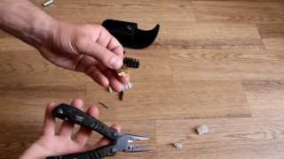 Оба лезвия выполнены из высоколегированной нержавеющей стали 440C (18% хрома, 1,2% углерода, ~1% марганца, 0,75% молибдена), которая прошла закалку, демонстрирует высокую твердость 58 HRC, износостойкость и великолепно держит заточку. Также мультитул Ganzo G302B может выполнять функции плоскогубцев, кусачек со сменными режущими частями), ножниц, консервного ключа, пилки, шлицевой отвертки и ножниц. Большой набор различных бит и переходник для них, превращает инструмент в универсальную отвертку. Лезвия и другие инструменты надежно фиксируются с помощью замка Axis lock.