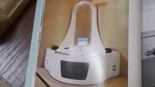 Защита от сухого пуска. Ванна оснащена 15-ти дюймовый LCD дисплеем. Есть функция хромотерапии. CD/MP3/DVD проигрыватель, пульт дистанционного управления