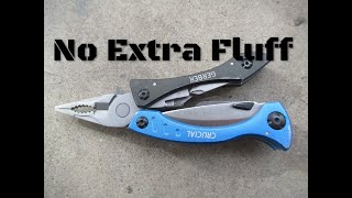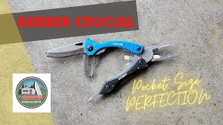 В инструменте используется комбинированный клинок с профилем sheepsfoot, который сочетает гладкую заточку от острия до середины с серрейторным лезвием ближе к рукояти. Такой вид заточки еще называют полусеррейторной. Благодаря рельефной пластиковой накладке, закрепленной 2 винтами, лезвие удобно открывается простым движением пальца и четко блокируется замком Liner Lock. В дополнение к клинку идут длинные плоскогубцы с острыми губками (острогубцы), кусачки для работы с проводом, шлицевая и крестовая отвертки, открывалка для бутылок, карабин для поясного крепления на шлейке джинсов или петле походного рюкзака, а также пружинная клипса для фиксации на ремне или кармане. Существует также черная модификация инструмента Gerber Crucial Black, в которой карабин заменен на стропорез. Корпус, клинок и складные инструменты мультитула изготовлены из легированной нержавеющей стали, стойкой к коррозии и износу. Мультитулы и ножи Gerber изготавливаются в США, а главным достоинством модели является пожизненная гарантия на инструмент, которую предоставляет производитель.