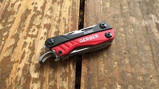 Способен выполнять 8 различных функций. Может играть роль ножа, причем, благодаря безопасному профилю sheepsfoot, таким лезвием можно легко разрезать плотно прилегающий к телу ремень безопасности. Оснащен небольшими, но вполне функциональными ножницами, открывалкой для бутылок, шлицевой отверткой, плоскогубцами и кусачками, напильником и пинцетом. Кроме этого у мультитула Gerber Dime есть специальный инструмент для аккуратного вскрытия упаковочной тары.