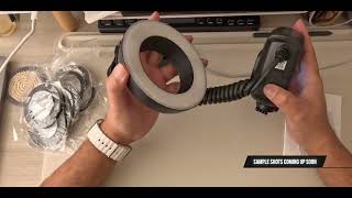 Отметим, что в модели применяется две лампы-полукольца, которые допускается включать вместе или по отдельности. Для работы в условиях недостаточной освещённости придётся кстати два встроенных диода подсветки автофокуса. Питание макровспышки налажено от съёмной аккумуляторной батареи ёмкостью 2600 мАч. Полного заряда АКБ хватает примерно на 660 срабатываний импульсного света в режиме полной мощности. Настройки высвечиваются на крупном инфо-дисплее. Модель совместима с широким перечнем фотоаппаратов марок Canon, Nikon, Sony, Fujifilm, Olympus, Panasonic и Pentax.