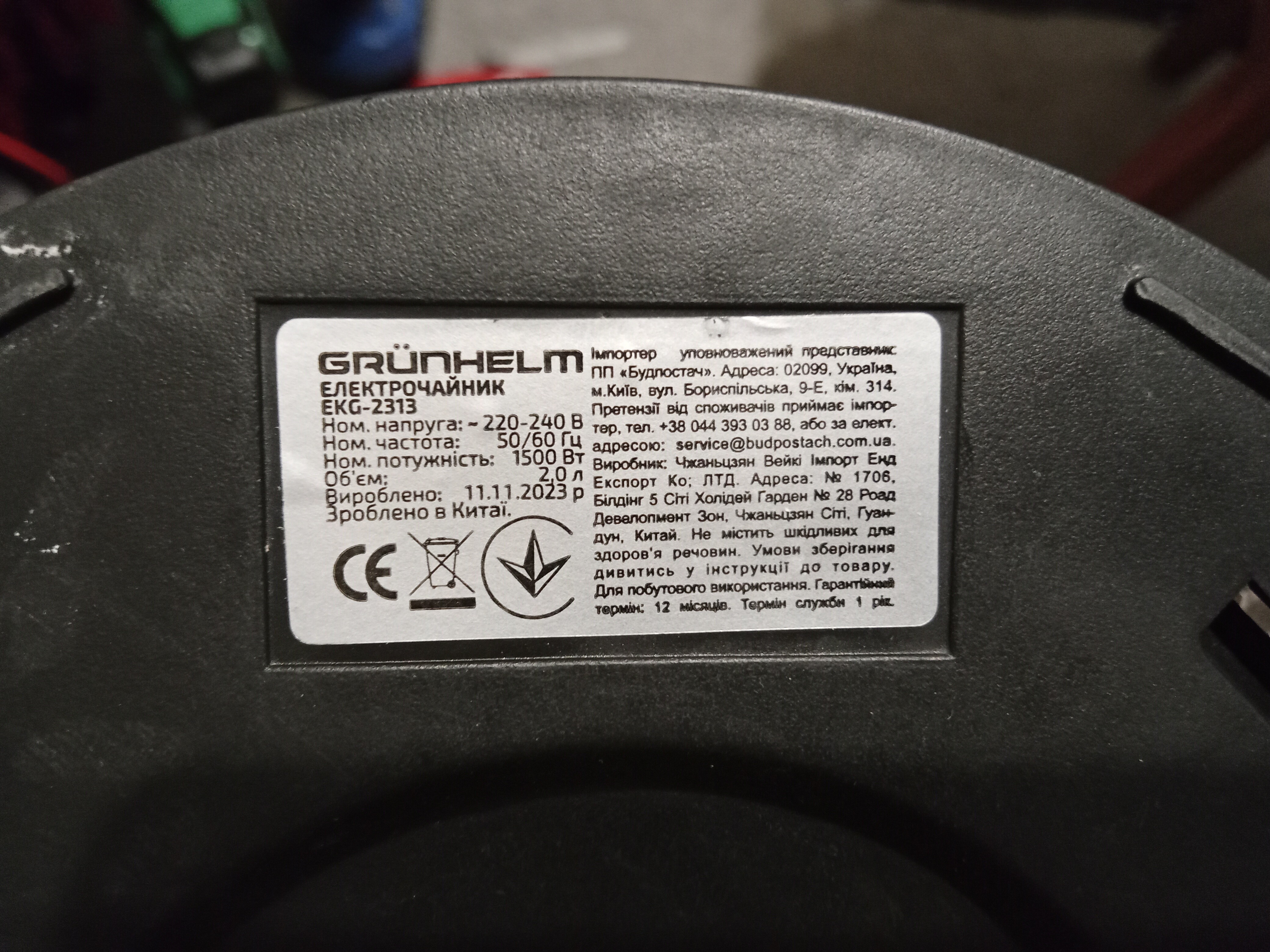 Работа ТЭНа автоматически отключается при перегреве устройства. Электрочайник Grunhelm EKG-2313 оснащен фильтром от накипи. В наборе есть съемная подставка со шнуром питания. Модель можно вращать на подставке вкруговую. Декоративная подсветка попутно выполняет и роль светового индикатора работы ТЭНа. Для нагрева воды используется дисковый элемент. Это плоский ТЭН с потайным нагревателем, который обеспечивает максимальную теплоотдачу и упрощает чистку колбы. Электрочайник имеет на крышке отдельную рукоятку, которой удобно открывать чашу. На колбе предусмотрена мерная шкала. Через стекло хорошо виден как уровень жидкости, так и сам процесс кипячения воды. Увеличенный до 2 литров объем даст возможность за один подход приготовить большое количество порций чая/кофе. В этой модели используется токоведущий шнур длиной 0,75 м.