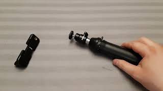 «Из коробки» мини-штатив комплектуется шаровой головкой, дополнительным держателем для экшн-камеры и фиксатором для мобильного телефона. Последний уверенно держит смартфоны с шириной корпуса от 5.5 до 7.8 см (в горизонтальном формате). Стоит отметить, что весит кроха-штатив всего-навсего 190 г.