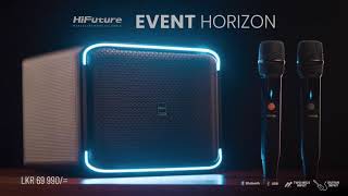 Позиционируется как продукт средней ценовой категории, предназначенный для озвучивания закрытых помещений значительно площади и открытых площадок. Беспроводная акустическая система HiFuture Event Horizon может применяться для акустического оформления тематических ивентов, вечеринок и развлекательных мероприятий. Оборудована четырьмя динамическими драйверами суммарной мощностью 100 Вт. Встроенный DSP-процессор обеспечивает полноценную цифровую обработку звука и функционирование эквалайзера. Беспроводный интерфейс Bluetooth 5.3 обеспечивает передачу аудиосигнала по воздуху на расстояние до 10 м. Мощный басовый характер звучания этой колонки идеально подойдет для воспроизведения треков популярной и электронной танцевальной музыки.