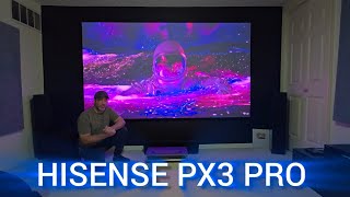 Проектор топового ранга, заточенный под кинематографическое качество трансляций в максимальном разрешении кадра 4K — 3840х2160 пикселей. Модель вооружена лазерным источником света TriChroma с пиковой яркостью на уровне порядка 2800 ANSI-люмен и покрытием порядка 110 % гаммы BT.2020. Как результат, Hisense PX3 выдаёт чёткую и насыщенную картинку даже при дневном освещении. В полной красе возможности проектора раскрываются при трансляции HDR-контента — модель наделена поддержкой HDR10 и Dolby Vision.