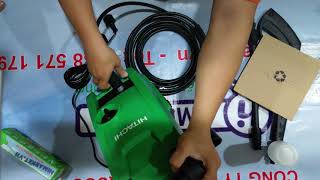 В штатной комплектации Hitachi AW100 поставляется вкупе с 5-метровым сетевым проводом и ПВХ-шлангом идентичной длины. Также к моющему агрегату прилагается пара насадок бытового предначертания: веерная и точечная. Команды прибору на запуск и остановку даются путём проворачивания переключателя на лицевой панели. Залог мобильности агрегата — транспортировочная ручка и, что более важно, скромные массогабаритные показатели (5.4 кг при размерах 49x32x24 см). Для подвешивания сетевого шнура в конструкцию аппарата внедрены так званые «рожки».