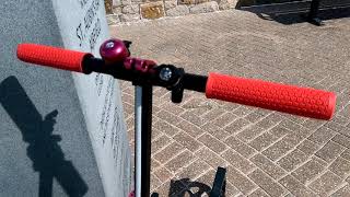 Самокат дополнительно оснащен звонком, удобными грипсами и оригинальной двойной подставкой, которая обеспечивает лучшую устойчивость при парковке. Такая конструкция более надежна по сравнению с традиционными одинарными подножками.