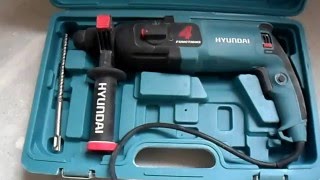 Универсальный трехрежимный перфоратор с небольшой мощностью (800 Вт), умеренной скоростью работы (930 об/мин) и силой удара 2.5 Дж. Может использоваться для ударного и безударного сверления, а также выполнять функции отбойного молотка (предусмотрена возможность долбления с проворотом патрона или без проворота). В патрон перфоратора Hyundai H 850 можно вставлять все виды оснастки, имеющие хвостовики SDS+. К инструменту прилагаются пластиковый саквояж, дополнительная рукоятка с ограничителем глубины и набор принадлежностей для сверления и демонтажных работ: три бура по бетону, долото и пика.