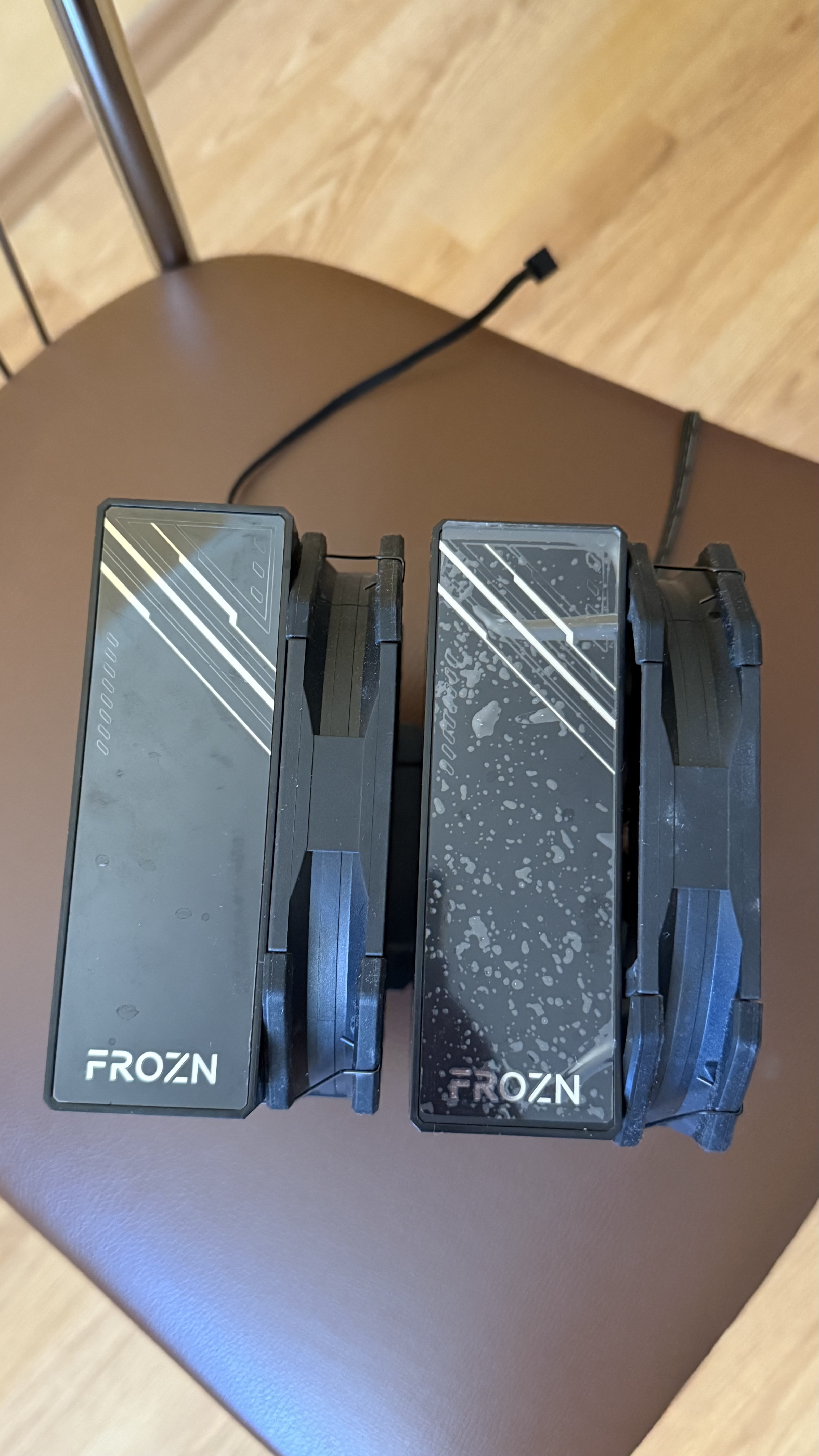 ID-Cooling Frozn A720 — двухбашенный суперкулер с TDP 300 Вт, что достигается семью теплотрубками и двумя вентиляторами увеличенного диаметра 14 см. Их обороты по технологии PWM автоматически регулируются от 500 до 1800 в зависимости от температуры. И даже на максимальной скорости шум не превышает 33 дБ, благодаря гидро-динамическому подшипнику FDB.