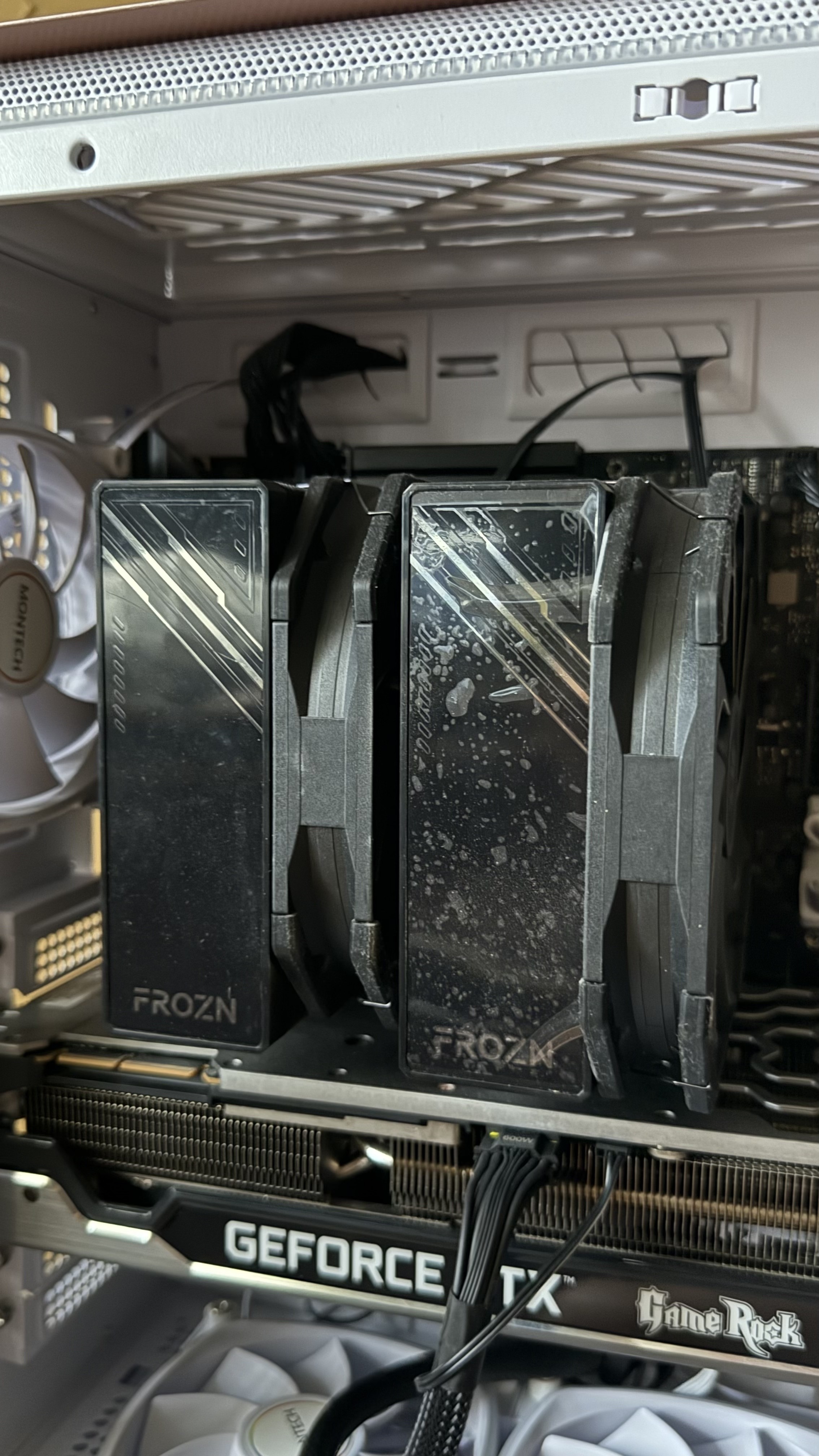 Доволен охлаждением.Шумновато,но без водянки. OCCT тест Power при TDP 253 wat i7 14700 KF - температура 88-90 градусов. из-за високоъ оперативи передный кулер пыднявся вгору ы не закрився корпус. |