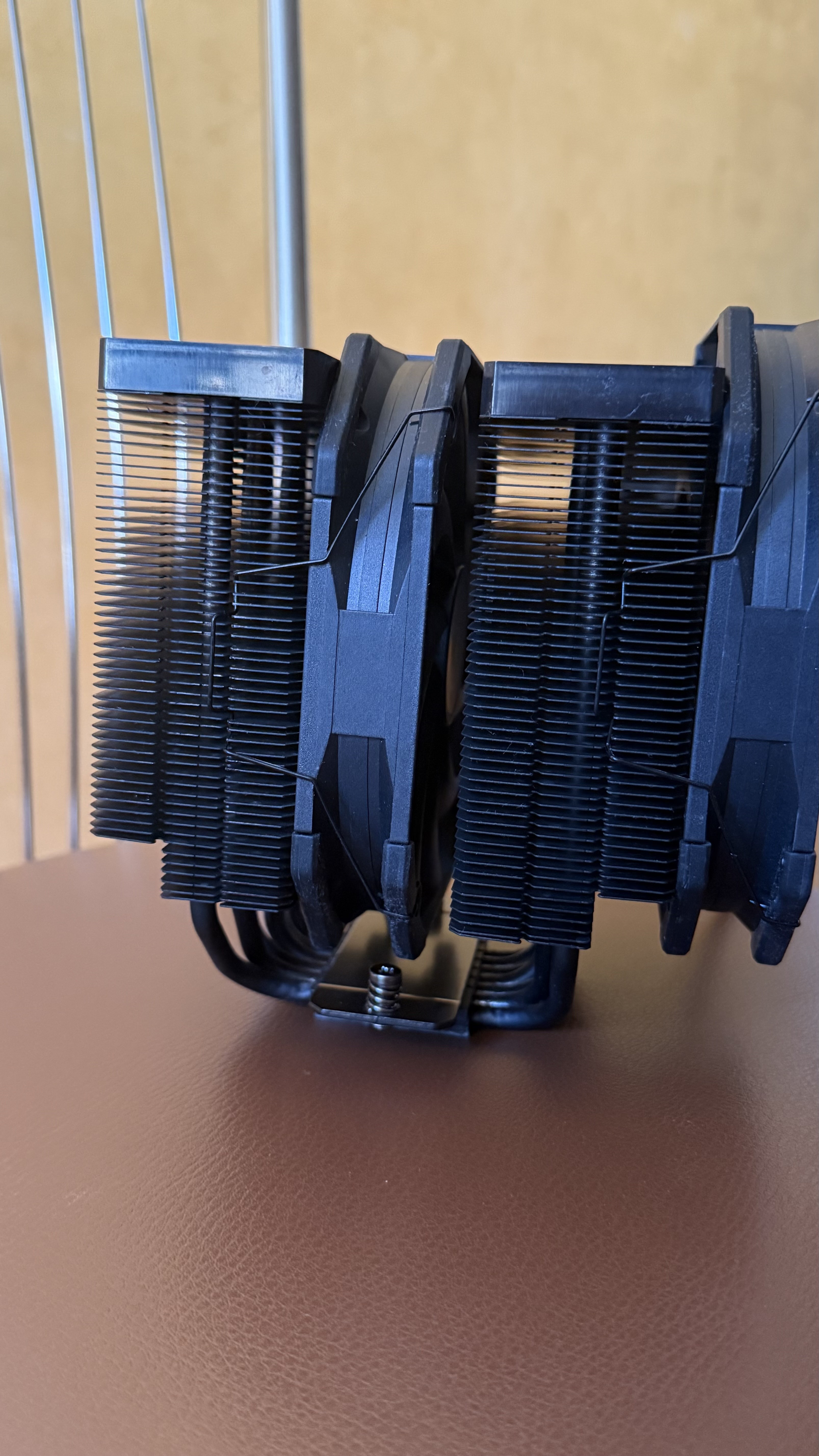 Топ кулер за свої кошти, башня велика може влізти не у всі корпуси Має 140мм кулер, гарно охолоджує мій не найгарячий камінь Ryzen 5 7500f при кімнатній температурі 22ċ під навантаженням occt на цп 79с максимально Може бути проблематично встановити високі модулі озп, купер може бути вище ніж башня |