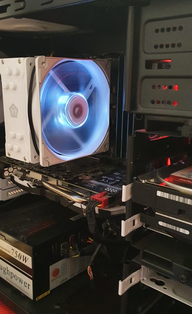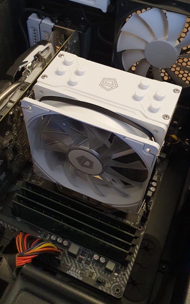 Данный кулер трудится над охлаждением процессора Ryzen 4750G в корпусе mini-ITX. Судя по всему для этого он избыточен, но как следствие, оооооооочень тихий. Белый цвет кулера отлично дополняет белые вентиляторы корпуса Fractal Design. Ещё бы подсветка отключалась... Собран кулер добротно, сверху имеется декоративная пластиковая накладка, имеет очень простое крепление вентилятора, легко устанавливается на АМ4 сокет. Дизайн, бесшумность, производительность. Термопасту сразу в форточку |