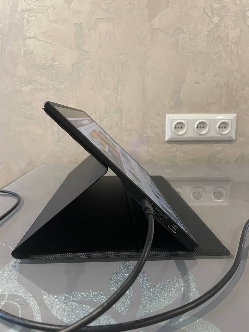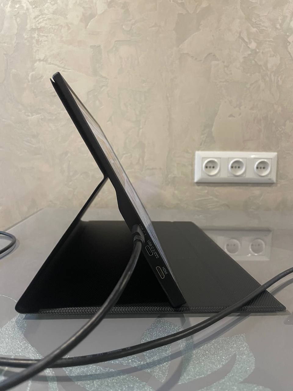 Работать на одном экране 13" MacBook Air — то еще извращение, поэтому решил взять портативный дополнительный монитор с PD. Выбрал именно этот вариант из-за адекватной цены, низкой задержки, Flicker-Free, Adaptive-Sync и более-менее нормального бренда, а не совсем подпольного Китая. Сам монитор очень тонкий и легкий. Для работы с текстом и серфинга в интернете — топ. Яркости хватает с запасом, комфортно работаю примерно на 60%. Глаза не устают. Углы обзора нормальные (картинка не темнеет, даже если смотреть не строго по центру). За час работы монитор съедает около 15% батареи мака. Из плюсов - есть чехол. Правда, по ощущениям он почти одноразовый: если со временем потрепается, новый уже вряд ли найдешь. В чехле есть два углубления, в которые можно ставить монитор под разными углами. Если ставить его рядом с ноутбуком — удобно. Но если, как я привык, монитор сверху ноута, то с этими углублениями уже не получается выбрать комфортный для глаз угол. Приходится ставить монитор на его прорезиненные ножки и подбирать угол. Планирую купить настольную подставку, чтобы не заморачиваться. Тут, кстати есть крепление VESA. Есть чехол. Тонкий и легкий. Наличие Flicker Free и Adaptive-Sync. Низкое потребление энергии. Чехол крепко магнитится к монитору. Крепление VESA. Динамики (чисто на крайний случай тихо включить фоном музыку для работы). Дешевые материалы чехла. Не самая удобная кнопка управления (подпружиненный рычажок с кнопкой). |
