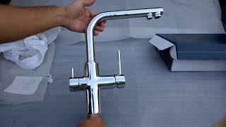 Настольный монтаж смесителя выполняется на одиночное отверстие ∅ 35 мм с последующим подключением к фильтру и холодному/горячему трубопроводам гибкими шлангами. Для длительной беспроблемной эксплуатации устройства рекомендованное рабочее давление в водопроводе должно составлять 1 – 6 бар при температуре воды от 4° до 80°. При необходимости есть возможность использовать прибор совместно с проточным водонагревателем.