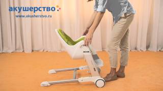 Модель примечательна привлекательным внешним видом, а также широкими возможностями для регулировки сидения, что значительно повышает удобство использования. Так, пользователь может изменять угол наклона спинки, а также высоту подножки и сидения. Стоит обратить внимание, что само сидения оборудовано необходимыми ремнями безопасности, а под сидением нашлось место корзине для игрушек. Немаловажно и то, что в сложенном виде стульчик весьма компактный, что упрощает вопрос хранения или транспортировки.