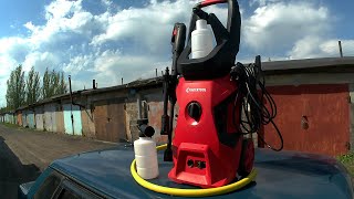 Компактная и доступная бытовая мойка высокого давления с армированным шлангом длиной 5 м, комплектной регулируемой универсальной насадкой и пенообразователем с бачком. Позиционируется как продукт базовой ценовой категории, предназначенный для домашних пользователей. Ориентирована на применение малой или средней интенсивности (2-3 раза в неделю). Станет удобной помощницей в уходе за легковым автомобилем или внедорожником, эффективно очистит от грязи и наслоений кузов и ходовую часть.