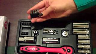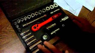 Времена сейчас такие, что денег катастрофически не хватает, поэтому вместо визита на автосервис приходится много делать самостоятельно. А для того чтобы обслуживать машину без нормального инструмента не обойтись, не все ж побираться по соседям в гаражном кооперативе. Купил этот набор по случаю, и пользуюсь около года. Помогает мне не только в гараже, для дома тоже штука полезная. В прошлом месяце с его помощью самостоятельно разбирал и ремонтировал стиральную машинку. Комплект торцевых головок самого распространенного размера (от 8 до 22 миллиметров) и удлиненых головок (от 8 до 19 мм). Две свечные головки, небольшой, но полезный набор шлицевых, крестовых и torx насадок, жесткие удлинители на 75 и 150 мм. Понравился ключ с храповиком и фиксатором, действительно удобная штука. Материал инструмента закаленная углеродистая сталь. Судя по износу часто используемых торцевых головок, а точнее по его отсутствию, сталь качественная и ее закалку выполнили правильно. Конечно, хром-ванадиевая сталь была бы еще лучше, но инструмент из такого сплава стоит заметно дороже. Для защиты от коррозии инструмент имеет блестящее хромовое покрытие, которое наносили гальваническим методом. От влаги оно защищает неплохо, но это не нержавейка, поэтому капли воды перед укладкой на хранение нжелательно протирать ветошью. Не самый качественный пластиковый кейс. Инструмент он вроде бы держит и толщина пластика достаточная, но качество изготовления низкое и выглядит он неряшливо. Уже пожалел, что не взял набор с гибким удлинителем, очень пригодился бы. |