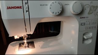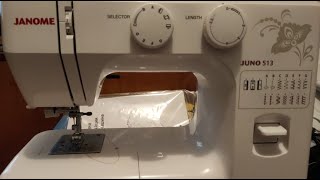 Устройство предлагает всего 15 швейных программ и выполняет обметку петли в полуавтоматическом режиме за 4 шага без поворота ткани. Металлический каркас и мощный двигатель выдерживают интенсивные нагрузки, повышают долговечность и производительность техники. Что касается настроек, Janome Juno 513 дает возможность вручную настроить длину стежка (до 4 мм) и ширину строчки (до 5 мм) и отрегулировать натяжение нити.
