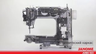 Также Janome Juno 523 оснащена нитевдевателем, который поможет при заправке нити, рукавной платформой для работы с рукавами и прочими узкими элементами одежды, имеет функцию реверса (обратный ход для закрепления строчки) и дает возможность отключить рейку транспортера, когда это необходимо. Вы можете регулировать натяжение нити, длину стежка (до 4 мм) и и ширину строчки (до 5 мм). В комплектацию швейной машинки входят универсальная, оверлочная и лапка для вшивания молнии, игольная пластина для штопки и вышивки и прочие инструменты. Также есть освещение рабочей области и ручка для переноски прибора, а вот чехол, к сожалению, в комплект поставки не входит.