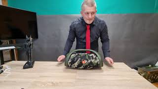 Колонка выполнена в лучших традициях компактных и мощных бумбоксов JBL, которые стали родоначальниками стиля. Как и предшественник, выпущенный в 2017 году, Boombox 2 получил немаленькие размеры 26x48x20 см и солидный вес почти 6 кг. При этом корпус отлично сбалансирован и не создает проблем при переноске, а удобная ручка ее только упрощает.