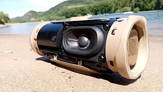 Фирменный, насыщенный басами звук JBL создает один активный акустический излучатель и два пассивных радиатора. Производитель гарантирует воспроизведение частотного диапазона от 60 Гц до 20 кГц, что вполне достаточно для абсолютного большинства музыкальных жанров, причем особенно хорошо звучит электронная танцевальная музыка и хип-хоп. Благодаря дополнительному разъему USB Type-C колонка может выступать в роли зарядного устройства для других гаджетов.
