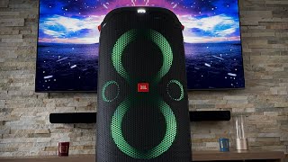Двухполосная портативная напольная колонка от JBL со встроенным аккумулятором, базовой влагозащитой корпуса, возможностью управления со смартфона и встроенным режимом караоке. Устройство является одной из младших моделей в специализированной серии JBL PartyBox. В нее входят специализированные выносные колонки повышенной мощности, которые пригодятся на вечеринке у бассейна, поездке на природу, занятиях фитнесом на отрытом воздухе и т.д.
