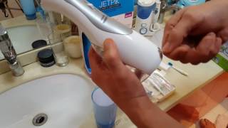 Три насадки для ирригации из комплекта поставки Jetpik JP200-Elite дополняются двумя насадками-щетками с овальными головками. Чистка зубов обеспечивается посредством звуковой технологии с частотой колебаний до 20 тыс./мин. Отметим, что щетина у щеток жесткая — подойдет она не для всех зубов. Также прибор укомплектован очистителем языка.