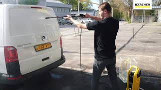 Автономная мойка высокого давления на аккумуляторной платформе Karcher Battery Power 36 V. Сменные литий-ионные батареи ёмкостью 5 Ач в качестве источника питания моющего агрегата обеспечивает примерно 14 мин. безостановочной работы устройства. Вода вырывается из сопла распылительного пистолета мини-мойки под давлением до 110 бар. Различные насадки допускают установку трёх уровней напора для оптимальной очистки различных поверхностей.