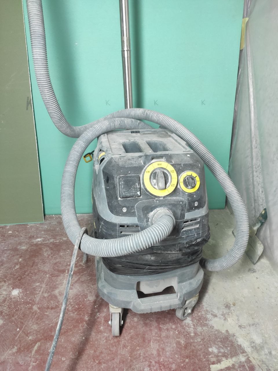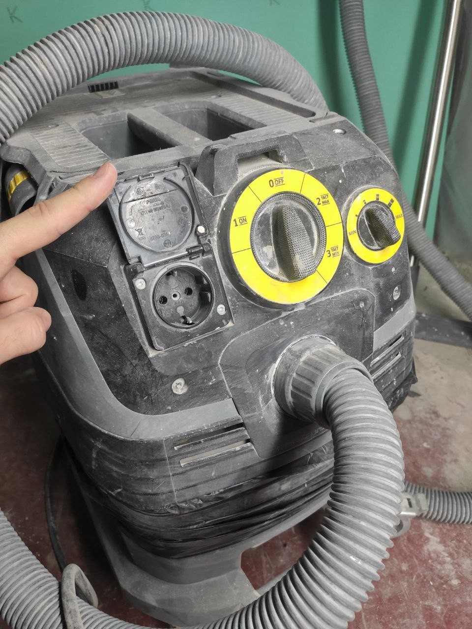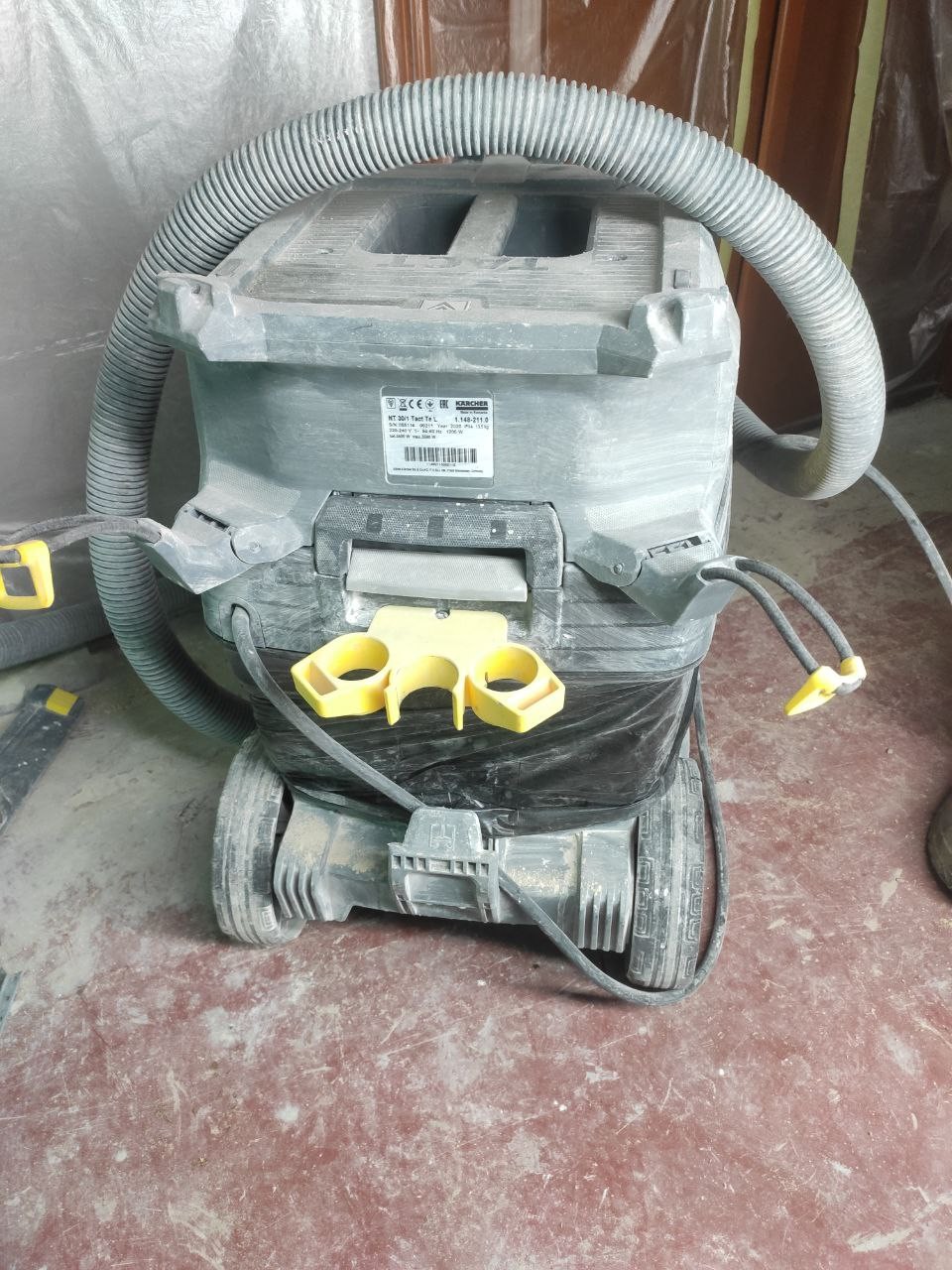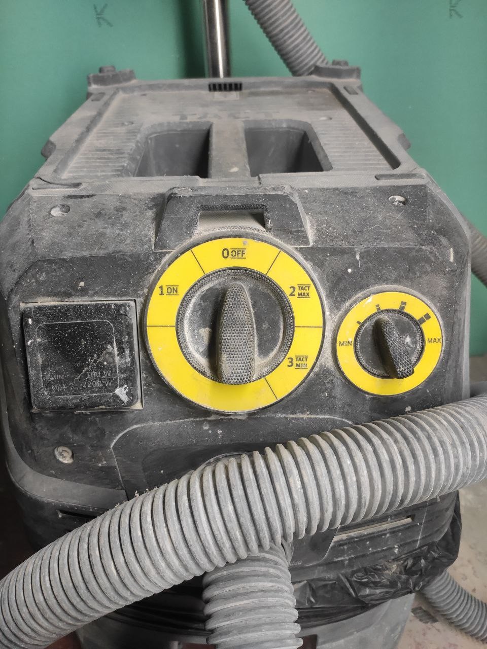 Брали пылесос у знакомого плиточника. Нужно было много сверлить, штробить и убирать строительную пыль. Техника ОГОНЬ, без такой на стройке ловить нечего, но покупать такое ради одного ремонта – глупо. Главный плюс — автоматическая очистка фильтра. Пылесос сам периодически его простукивает, поэтому тяга не падает, даже когда пыли полно. Мощность всасывания достойная. Очень выручает встроенная розетка: воткнул инструмент и пылесос запускается и выключается синхронно, еще и дотягивает остатки мусора из шланга пару секунд после остановки. Из косяков – маленькие передние колеса, которые спотыкаются о любой кабель или кирпичную крошку. А так в целом топовый аппарат. Для серьезного ремонта вещь обязательная. Автоматическая очистка фильтра. Длинный шланг. Пылесос запускается вместе с инструментом. Передние колеса маленькие. |
