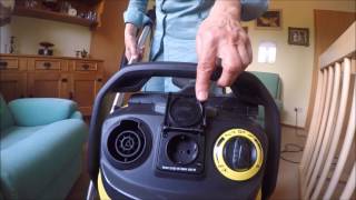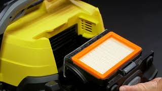 Еще одно преимущество Karcher WD 6 P Premium — наличие розетки для подключения электроинструментов (также в комплекте идет специальный адаптер). Оба будут включаться и выключаться практически одновременно: при выключении электроинструмента всасывающая турбина продолжает работать по инерции еще примерно 5 секунд, чтобы всосать остатки мусора из шланга. В результате грязь, возникающая при распиливании или шлифовке, сразу же собирается. Также удобен съемный фильтр, который расположен сверху, а не внутри бака: такое расположение позволяет ему не намокать при сборе жидкостей. А кассетник с фильтром легко снимается и очищается нажатием одной кнопки — и ваши руки останутся чистыми. В случаях, когда всасывается большое количество мелкодисперсной пыли без фильтровального мешка, используйте систему самоочистки фильтра, когда мощные импульсные потоки воздуха выдувают пыль из фильтра в контейнер.