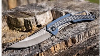 Необычный внешний вид лезвию, а также одной из боковин рукояти, придает матовое PVD-покрытие из карбонитрида титана, выполненное методом вакуумного осаждения. Рукоятка толщиной всего 9.6 мм с четко выраженным вырезом для удобства открывания состоит из задней стальной плашки и передней плашки из композитного эпоксидного стекловолокна G10 с карбоновой накладкой. В верхней части «хвоста» рукояти находится металлический карабин для крепления ремешка, а к стальной плашке прикручен пружинный карманный зажим (клипса). Производитель сопровождает изделие ограниченной пожизненной гарантией.