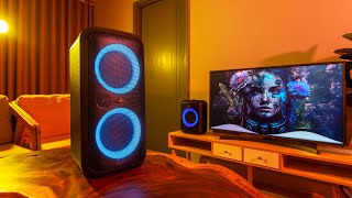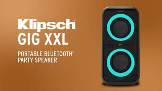 Напольная двухполосная моноблочная развлекательная аудиосистема повышенной мощности с поддержкой беспроводных подключений по Bluetooth, управляемой RGB LED-подсветкой, встроенным аккумулятором, микрофонным и гитарным входами. Позиционируется как продукт средней ценовой категории, предназначенный для озвучивания помещений и открытых площадок. Корпус акустической системы Klipsch GiG XXL изготовлен из прочного ABS-пластика и защищен от дождя/брызг воды по стандарту IPX4, что дает возможность использовать колонку на улице, возле бассейна или на даче без риска повреждения влагой.