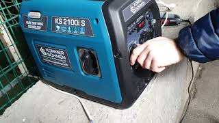 Компактный и легкий (18.5 кг) переносной генератор с номинальной мощностью 1.8 кВт. Благодаря небольшому двигателю (80 см3, 3.3 л.с.) потребляет мало топлива (в пределах 0.89 л бензина за час работы при нагрузке в 50% от паспортной мощности). Закрытый корпус с элементами звукоизоляции обеспечивает тихую работу. Поэтому бензиновый генератор Konner&Sohnen KS 2100i S можно использовать в непосредственной близости к жилищу или месту отдыха. Ассортимент разъемов, предназначенных для подключения потребителей электроэнергии, состоит из одной розетки (230 В, 16 А), разъема DC (12 В) и порта USB. Благодаря инверторному альтернатору приборы, подключенные к генератору, получают стабильный по характеристикам ток с правильной синусоидой, необходимый для работы современной бытовой техники и электроники.