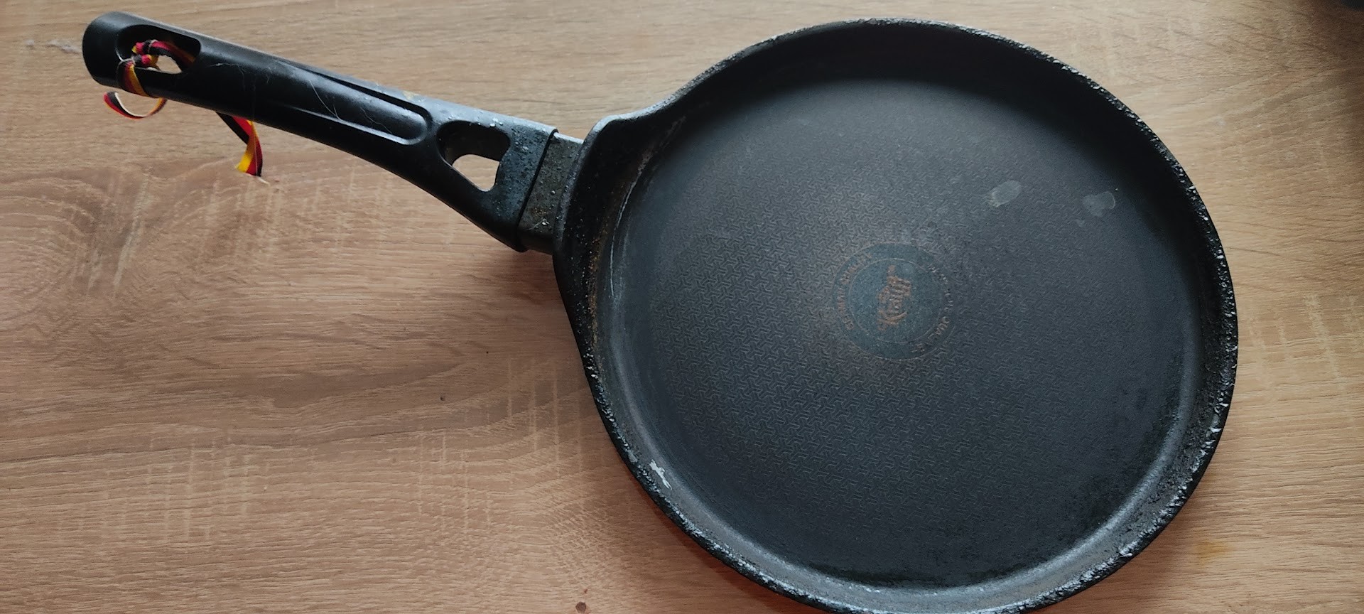 Антипригарне покриття реально якісне. Нашій сковороді вже кілька років, а млинці все одно не пристають, навіть без великої кількості олії. У цьому плані вона майже не відрізняється від нової, що приємно здивувало. Звісно, з часом видно, що поверхня потемнішала, з’явився наліт — але на готування це ніяк не впливає.