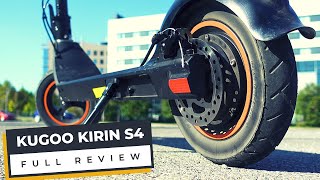 Мощная аккумуляторная батарея ёмкостью 10 Ач отвечает за автономный пробег Kugoo Kirin S4 — он может достигать 40 км (в зависимости от манеры езды, веса райдера и рельефа местности). Самокат обладает «грузоподъёмностью» до 100 кг. Собственный вес модели при этом равен порядка 13.5 кг. Рама у транспортного средства складываемая, что сделано в угоду удобства хранения и транспортировки. Электросамокат располагает тремя скоростными режимами передвижения, на заднем его колесе установлены неприхотливые дисковые тормоза. В дополнение модель заполучила фару переднего света, задний стоп-сигнал, звонок на руле и откидную парковочную подножку по левому борту корпуса.