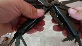 Когда первый раз берешь в руки эту вещь, понимаешь, что это качество! Все подогнано очень круто, вообще никаких люфтов, открывается все с заметным усилием, но в то же время можно открыть нож, или любой наружный инструмент одним пальцем. Оба ножа (обычный и серейторный) очень хорошо заточены, как и ножницы, которые как ни странно оказались очень удобными. Пилка перепиливает не очень толстые сухие и живые ветки вообще на «ура». Также в комплекте идет напильник, легко ставится на место пилы. Покупал блестящий, так как черный хоть и выглядит получше, но царапается мгновенно. Об отвертках пока ничего не могу сказать, так как не успел проверить. Для полноценного использования желательно купить набор быт, что расширяет функционал в разы.