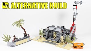 Инсталляция повторяет один из самых запоминающихся эпизодов кинокартины — битву при Скарифе, а точнее ее наземную часть. Дизайнеры LEGO старательно подобрали цвета деталей, чтобы максимально точно повторить пустынный ландшафт планеты. Даже взрывающиеся ловушки в качестве отвлекающих маневров сделаны интерактивными.