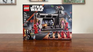 Небольшой детский блочный конструктор «Бой Паз Визсла и Мофф Гидеон» для сборки мандалорской базы из сериала «Мандалорец», являющегося частью легендарной киновселенной Star Wars. Относится к категории детских конструкторов Lego среднего уровня сложности, состоит из 289 деталей. Производителем позиционируется как продукт базовой ценовой категории из семейства Lego Star Wars образца 2024 года.