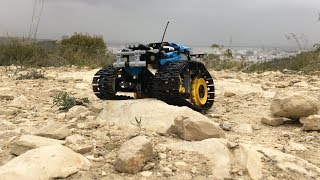 Крупные протекторы, большие задние зубчатые колеса и два мощных электрических двигателя обеспечивают внушительное ускорение. Для удаленного управления игрушкой используется дальнобойный пульт дистанционного управления. Размер собранных устройств: вездеход — 17х22х15 см, автомобиль — 12х20х19 см. Для питания необходимы щелочные батареи двух типов: 6 шт типа АА для питания модели и 3 шт типа ААА для питания пульта (батарейки в комплект не входят и приобретаются отдельно).