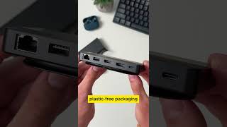 Фирменная портативная док-станция от Lenovo, существенно расширяющая потенциал подключений разнообразной периферии к компьютеру или ноутбуку. Устройство выполнено в пластиковом корпусе чёрного цвета с габаритами 120х55х20 мм. Примерно 66 % материалов изготовления корпуса — это переработанное вторичное сырьё. Подключение док-станции обеспечивается через интерфейс USB type C, для чего служит кабель с соответствующим штекером.