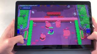 Подобное дизайнерское решение повышает удобство эксплуатации устройства и обеспечивает несколько новых сценариев его использования. Плюс это позволило разместить внутри большой динамик и емкий аккумулятор. Планшет Lenovo Yoga Tab 11 располагает 11-дюймовым дисплеем с разрешением 2000х1200 и матрицей IPS. Предусмотрена поддержка Dolby Vision, предусмотрен хороший запас яркости. Аппаратная часть собрана на основе 8-ядерного процессора Helio G90T с графическим чипом ARM Mali-G76 MP4, объем оперативной памяти ограничен 4 ГБ, а стационарной — 128 ГБ. Впрочем, последнюю можно дополнительно расширить за счет использования съемной карты памяти. Устройство хорошо справляется с современными мобильными играми образца 2018-2021 года на средних настройках графики. Весит устройство 650 г.